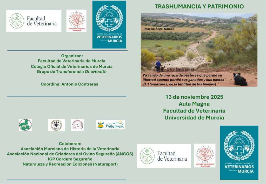El próximo 13 de noviembre, la Facultad de Veterinaria de la Universidad de Murcia acogerá la jornada “Trashumancia y Patrimonio”, organizada junto al Colegio Oficial de Veterinarios de la Región de Murcia y el Grupo de Transferencia One Health.