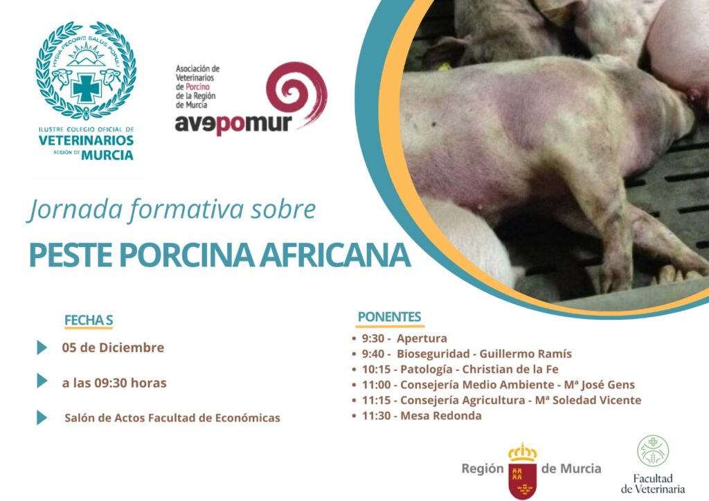 Por eso, el Colegio Oficial de Veterinarios de la Región de Murcia y AVEPOMUR organizan la “Jornada formativa sobre Peste Porcina Africana”, en colaboración con la Región de Murcia y la Facultad de Veterinaria.